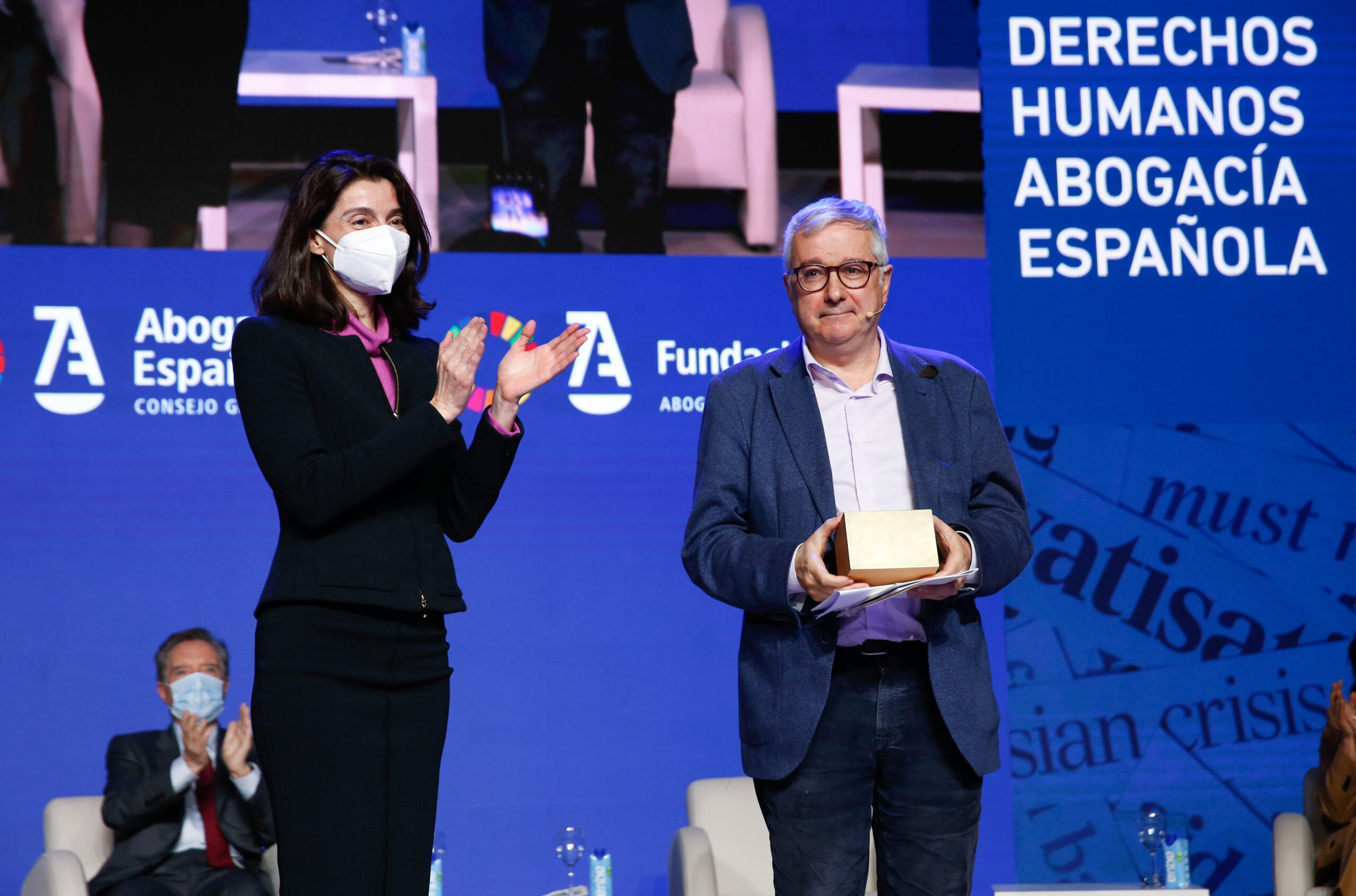 La ministra de Justicia, Pilar Llop, entregó el premio en la categoría de Instituciones a Reporteros sin Fronteras. Su presidente de honor, Alfonso Armada, tras recoger el galardón, destacó que “este premio tiene que ver con la labor que realizamos para preservar un derecho con el que no solo no nacemos, sino que también empieza a escasear cada vez más y es perseguido con saña”. La prueba es que “en los últimos 20 años, 1636 periodistas han sido asesinados en todo el mundo por ejercer un oficio que debería ser sinónimo de democracia”, lamentó. Y pidió también que los periodistas hagan autocrítica “porque cuando mezclamos hechos con opiniones, a sabiendas, nos convertimos en propagadores del ruido para convertir al otro en enemigo”.